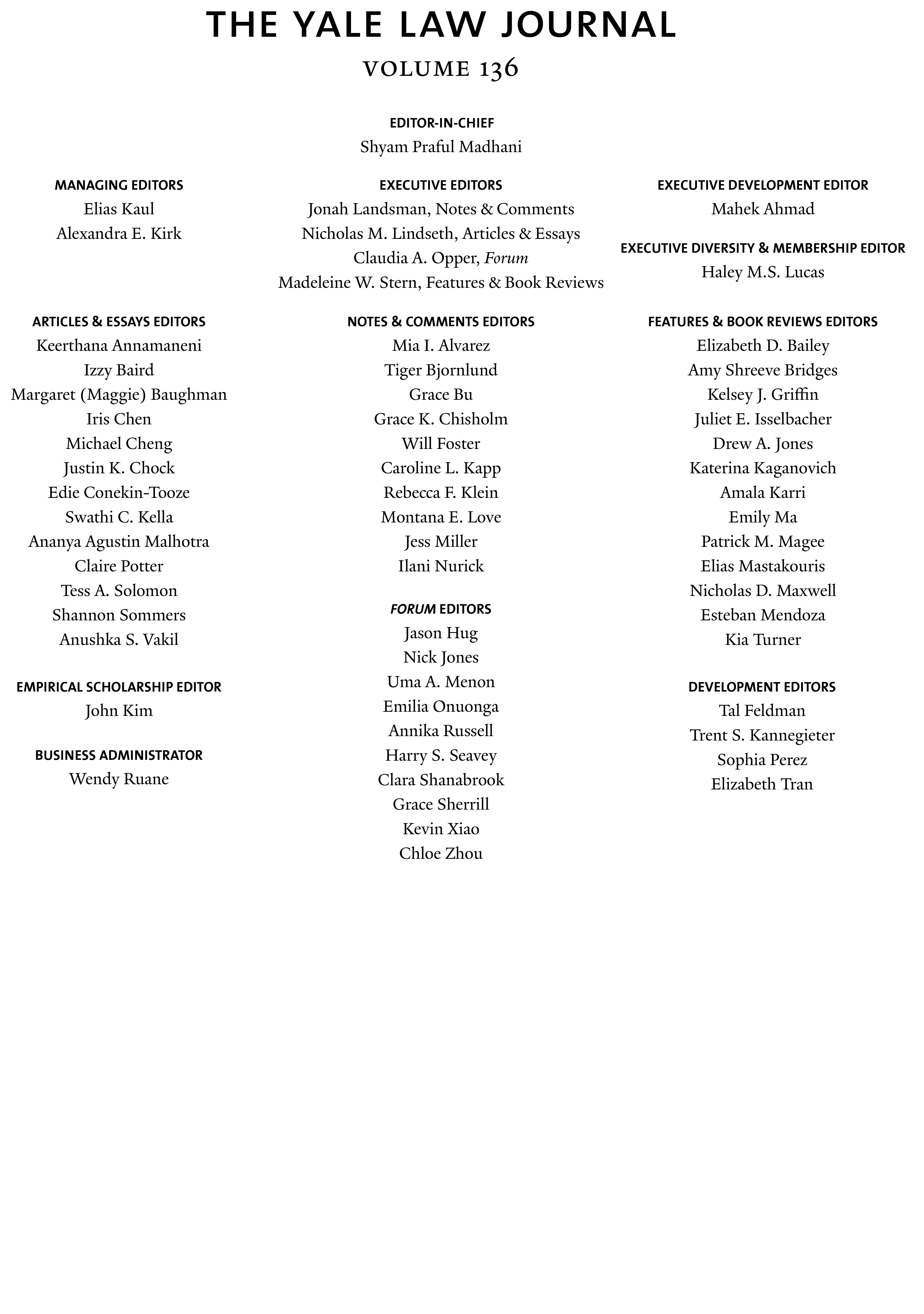 Volume 136 Masthead